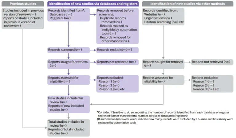 Figura 2. Plantilla de diagrama de flujo PRISMA 2020 para revisiones sistemáticas.