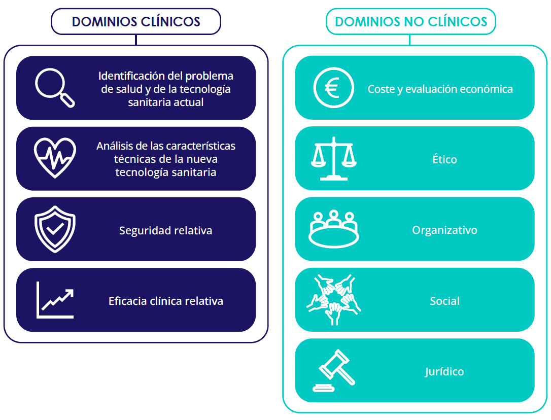 Figura 2. Dominios de evaluación incluidos en el borrador del Real Decreto Ley para la regulación de la Evaluación de Tecnologías Sanitarias.